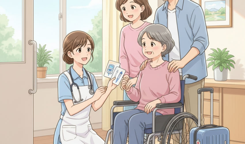 しかし、本人とご家族の強い希望があり、外泊許可が下り、1泊2日で久しぶりの一時帰宅の許可が下りました。外泊するにあたり、血糖測定や経管栄養の投与方法、インスリン注射の打ち方等を指導しました。