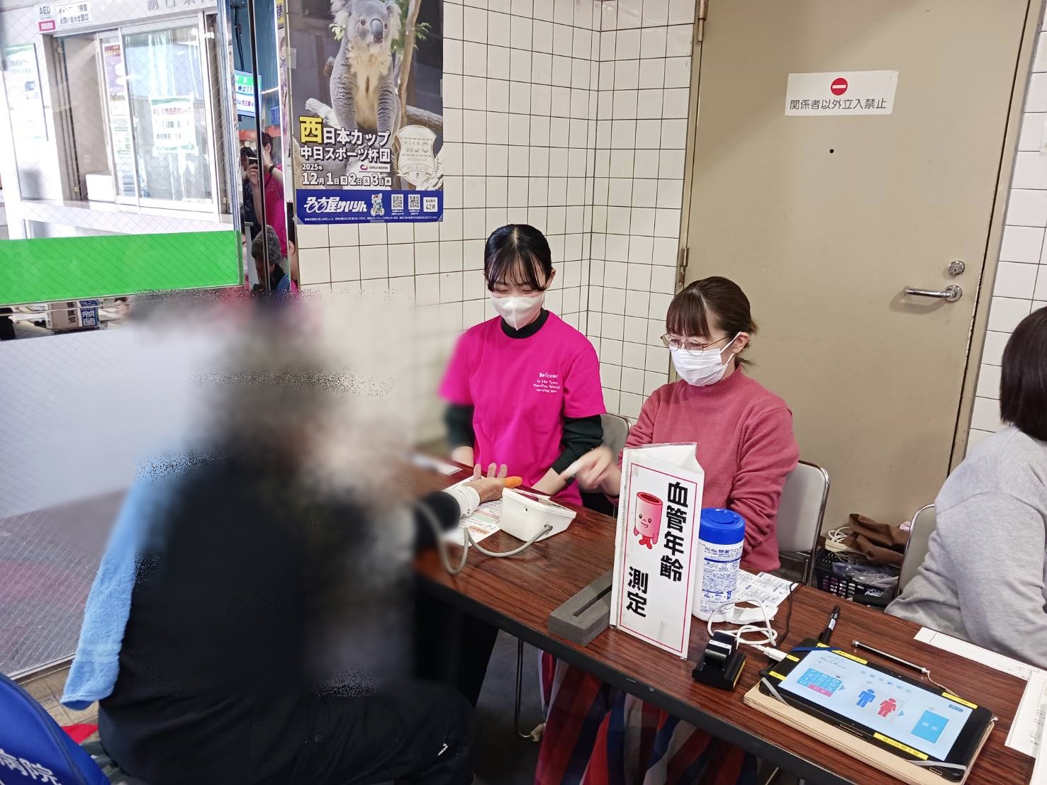 ボランティアで看護学生さんにも参加していただき、お客さんと会話を楽しみながら健康についてのアドバイス等をさせていただきました。